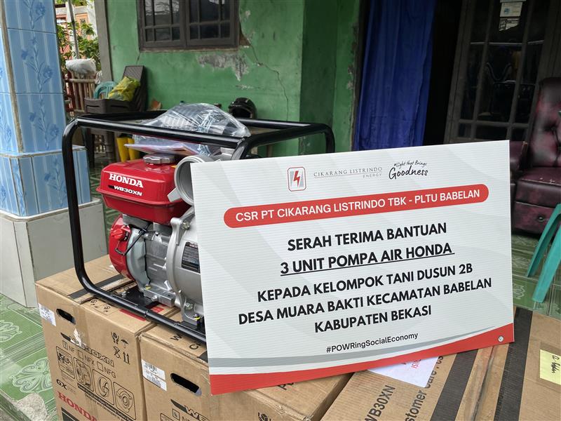 Program bantuan 3 mesin pompa air honda 3 inch bagi petani di Dusun 2B Desa Muara Bakti guna menunjang operasional pengairan bagi lahan persawahan dan perkebunan