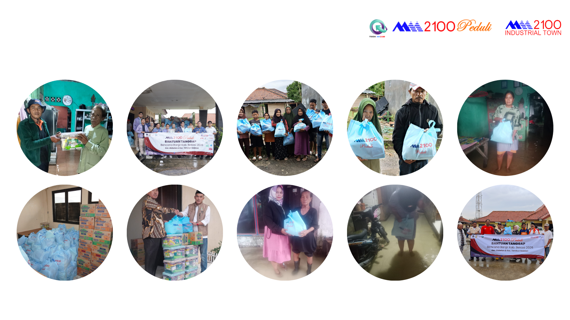 Distribusi dilakukan ke wilayah terdampak di Kecamatan Babelan (2 kelurahan dan 7 desa) dan Kecamatan Tambun Selatan (5 desa), serta melalui koordinasi dengan PMI Kabupaten Bekasi untuk memastikan penyaluran tepat sasaran.